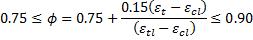 The compression controlled (e cl) and tension controlled (e tl) strain limits are defined by AASHTO LRFD 5.7.2.1. These limits are used to compute the capacity reduction factor with AASHTO LRFD Equation 5.5.4.2.1-2.