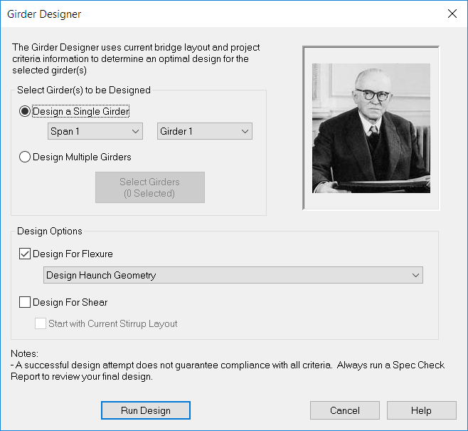 TIP: You can quickly design a girder by right clicking on it in the Bridge Model View and selected Design Girder from the context menu