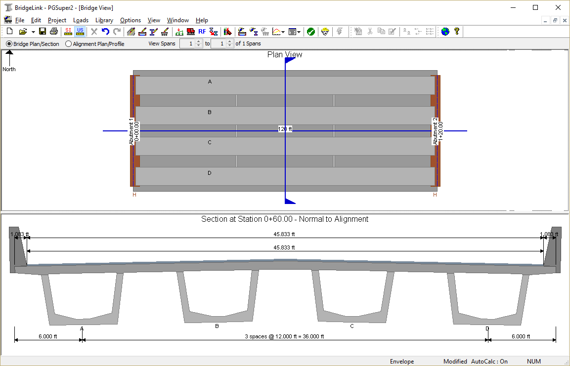 Finally the default configuration for this type of bridge is displayed in the Bridge Model View.