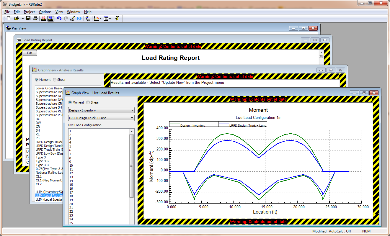 You probably noticed that XBRate updates graphs and reports on its own. You never had to find a command to tell the program to do the load rating analysis. This is AutoCalc (automatic calcuation) mode. You simply create graphs and reports and the software knows what to do. When your model changes, the graphs and reports automatically update.