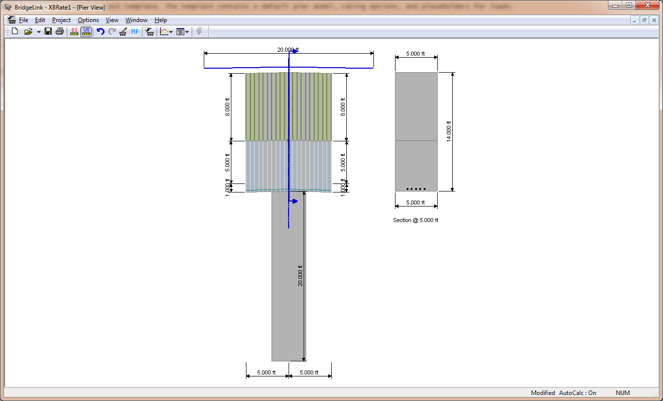 After the project is created, you are presented with the Pier View. You can see the default pier geometry isn't what we need.