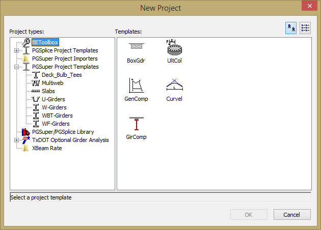 XBRate projects are created from the standard project template. The template contains a default pier model, rating options, and placeholders for loads.